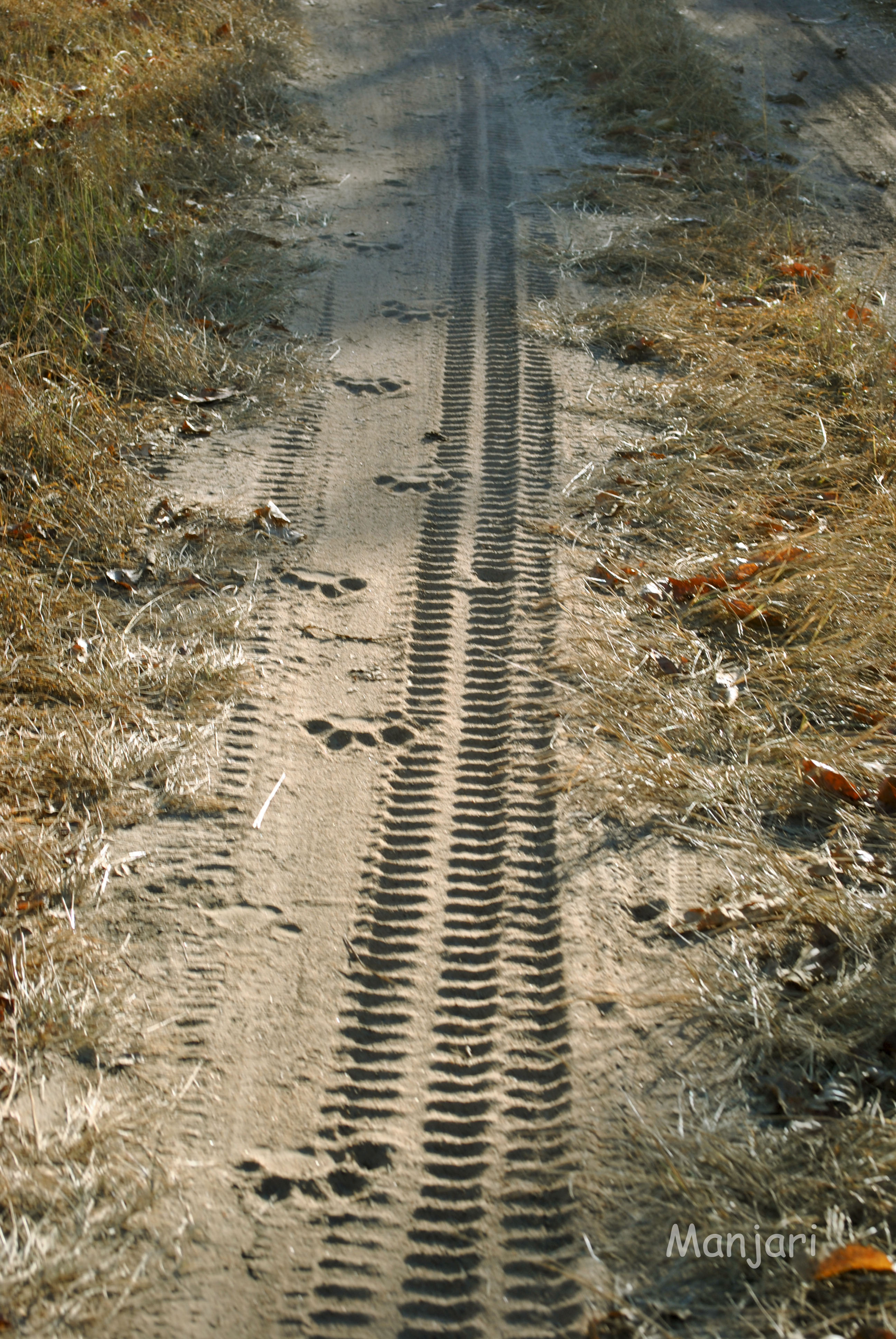 Tiger pug marks over jeep track in Bandipur National Park